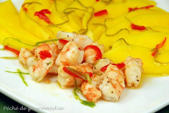 Carpaccio de mangue aux crevettes, au citron vert et piment d'après Guy Martin - Péché de gourmandise